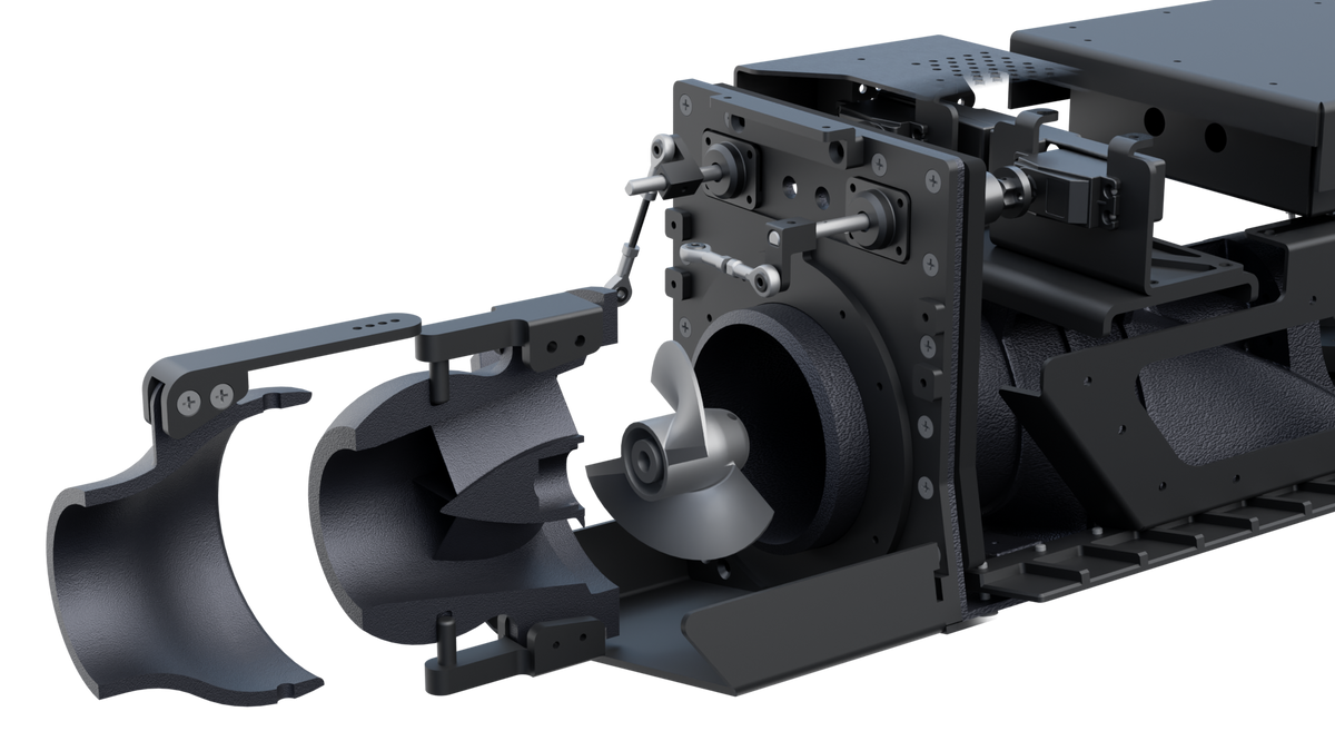 The reverse bucket provides precise and reliable thrust redirection for rapid stopping and agile maneuvering in confined or dynamic environments. Engineered for durability and smooth operation, it integrates seamlessly with the jet nozzle assembly through dual stainless-steel pivot arms and reinforced