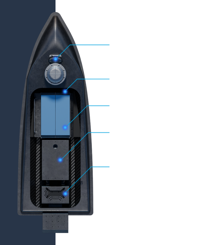 Our platforms use advanced carbon-fiber composites, ensuring maximum strength while remaining lightweight. Each vessel includes sealed internal compartments for safety, serviceability, and redundancy.